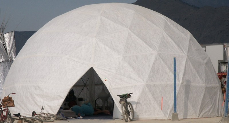 A tyvek covered dome. I think each triangle was cut separately and taped together. This must have been quite a lot of work.